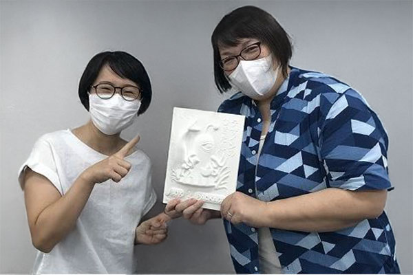 型を修正して臨んだ再試作では、立体成形による臨場感たっぷりの「ひとつめちゃん」が、今度はしっかりと浮かび上がりました。